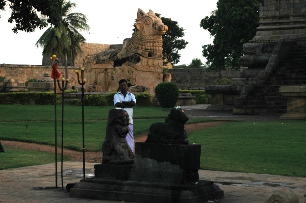 A 200-foot granite tower, an extremely massive statue of Nandi carved from a single stone, Shiva’s sacred bull, and dozens of sculptures showing various dance postures.