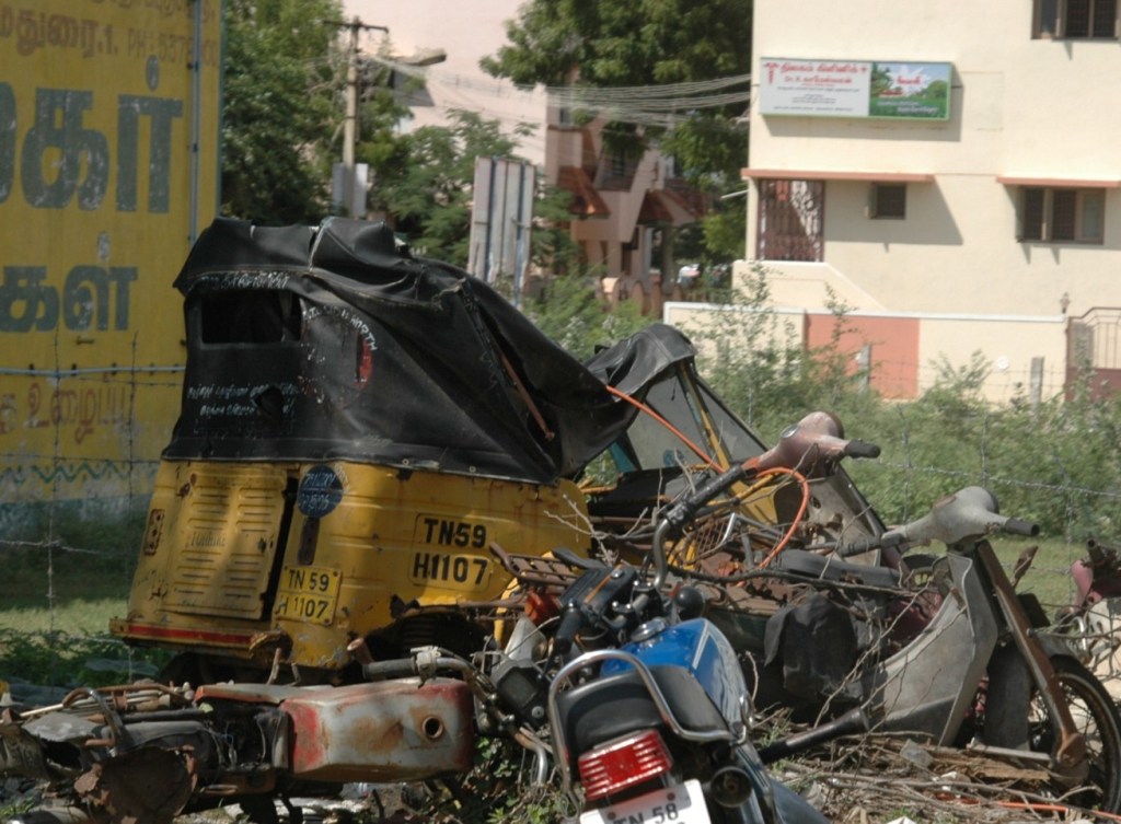 I acknowledge that I only saw two accidents in my six weeks in India. One is two cars scraping each other. The other is a scooter who hits a pedestrian crossing a road. I’m not sure of the injuries. My driver doesn’t stop. The destroyed tuk-tuk shows me that there are obviously more accidents that I don’t see!