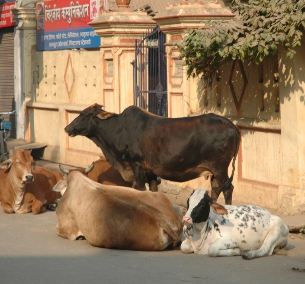 The cows are everywhere. Standing in the middle of traffic, not fazed by traffic speeding by them. Sitting on the ghats near chanting sadhus and bathers. Even if they are not to be killed, people don’t give them the benefit of the break. If a cow has to be moved, then a person will hit them. Jai told me that the cow’s hide is so thick that it hurts the person who smacks the cow more than the cow itself!