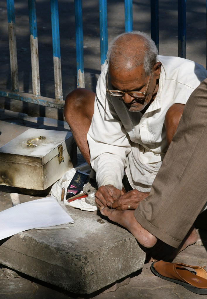 I seem them as entrepreneurs, from young boys on the Bay of Bengal, to a man carefully cutting toenails on a Kolkata street, to men owning flower, fruit, sari kitchen item shops for tourists, pilgrims and ordinary Indians. I see men engaged in some sort of physical activity or sport. Men jog in Delhi’s Lodi Gardens and play cricket or in Mumbai’s large green space Oval Maidan. Again, men not women.